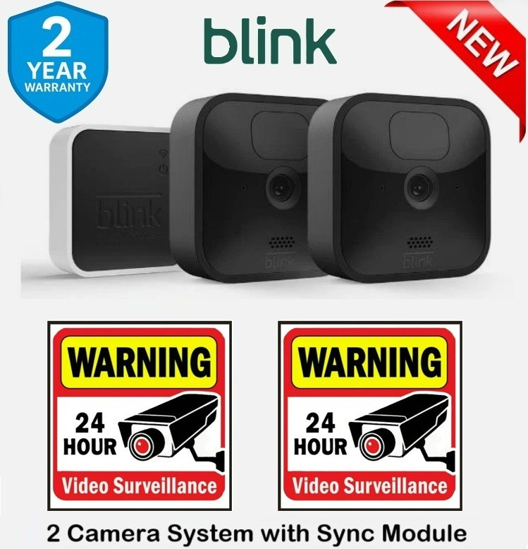 New Blink Wireless HD Smart Security Gen 3, 2 Camera System + Large CCTV Sign