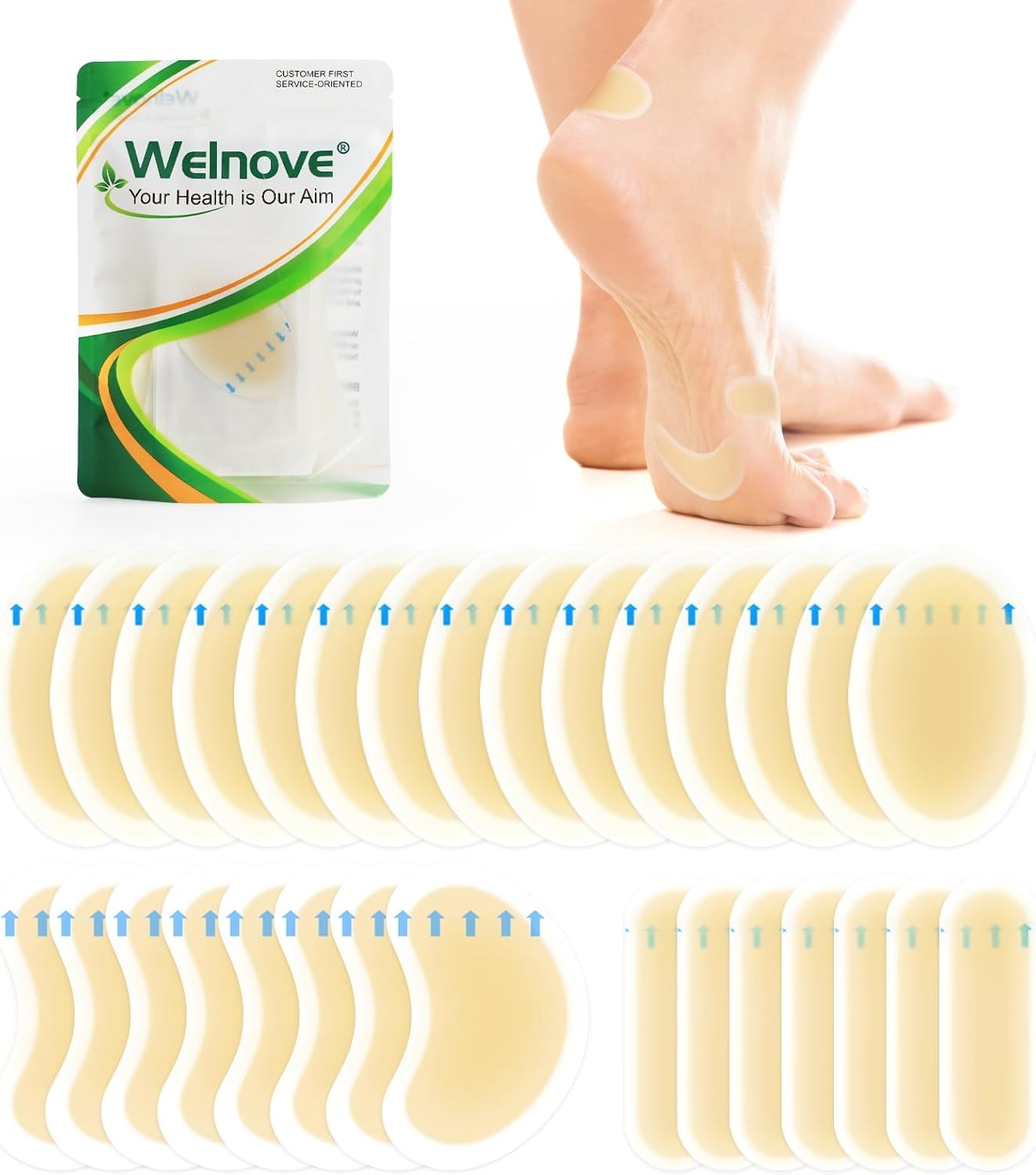 30 Pcs Blister Plasters for Feet - Welnove Invisible Hydrocolloid Heel Blister