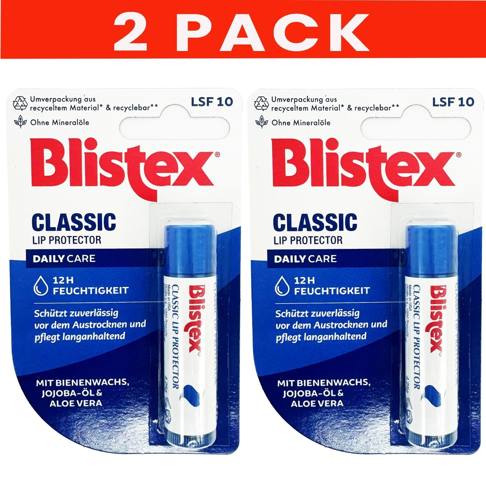 2 x Blistex Classic Lip Protector Daily Care LSF10 - 4.25g