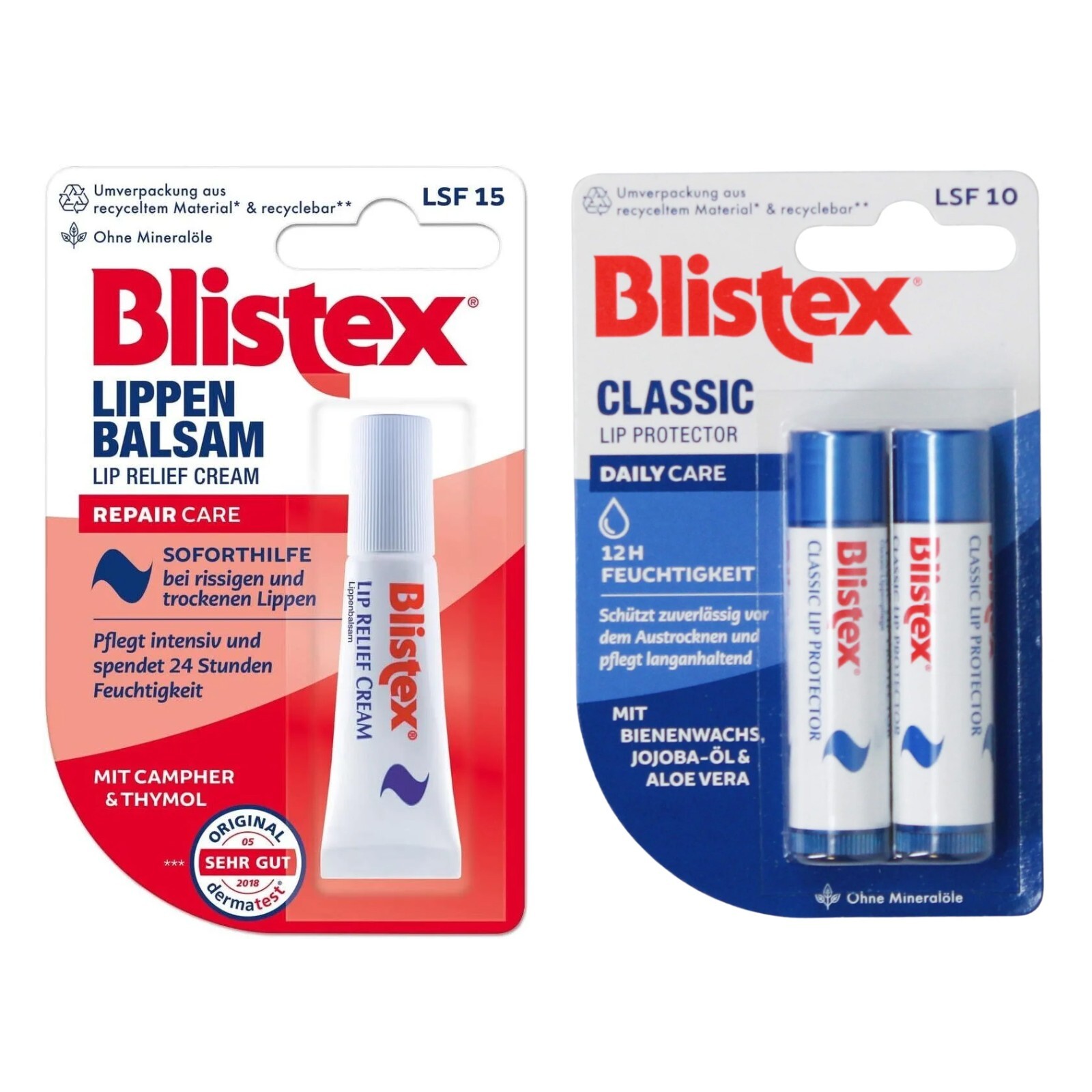 Blistex Lip Cold Sore Cracked Relief Cream 6ml & 2 x Classic Lip Care - 3 PACK