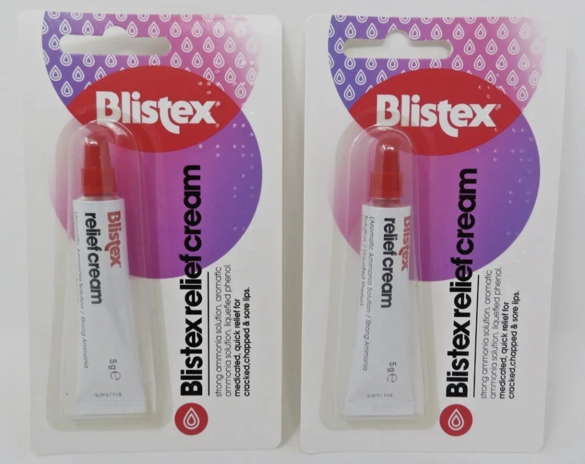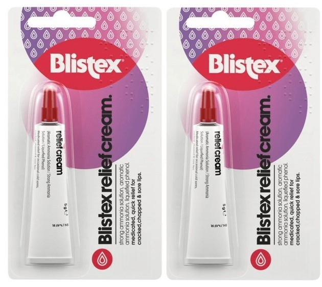 2 x Blistex Relief Cream 5g Lip Balm for Cold Sores Dry Cracked Chapped Sore Lip