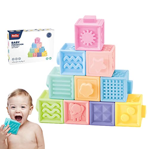 Mini Tudou 12PCS Baby Blocks Soft Building Blocks Baby Toys Teethers Toy Educational Squeeze Play with Numbers Animals Shapes Textures 6 Months and Up