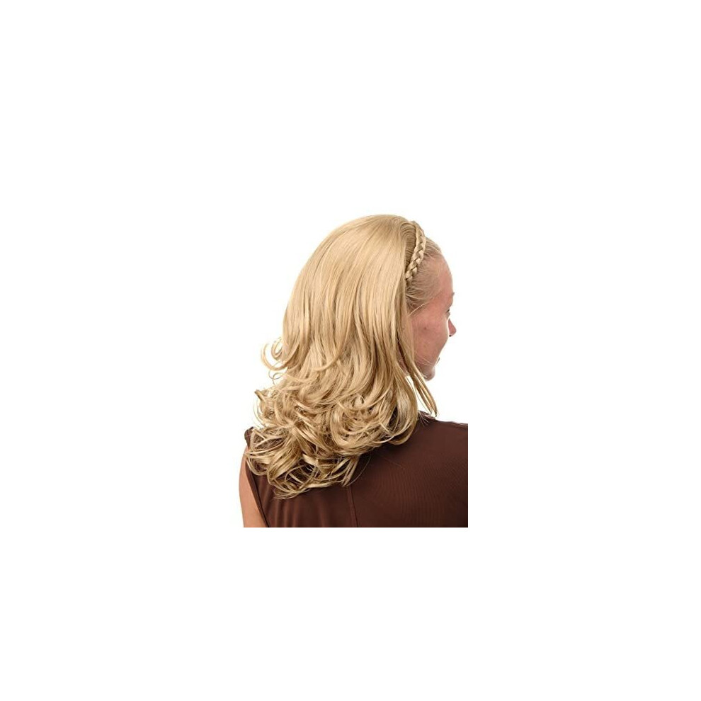 WIG ME UP - TYW60876H-24B Halfwig Hairpiece Extension with braided hair circlet hoop shoulder length straight curving wavy tips medium blond 16in