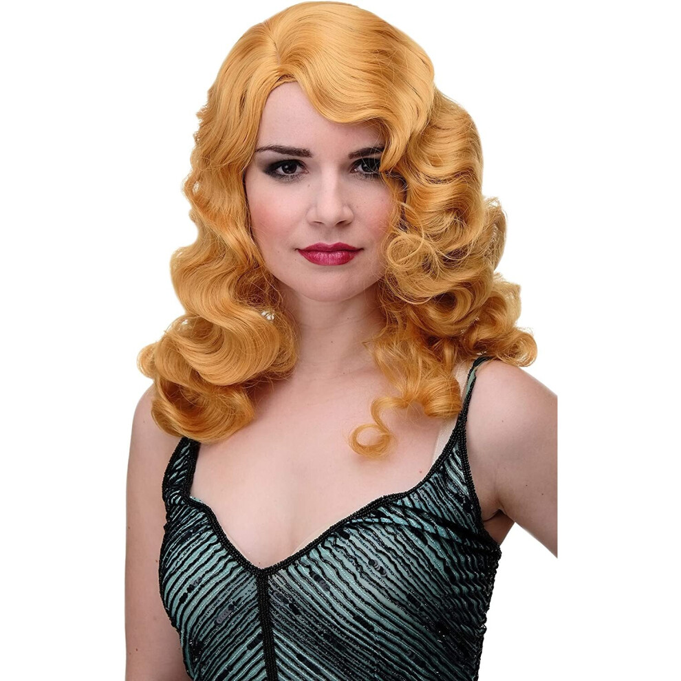 WIG ME UP GFW1860-144 Lady Quality Wig Cosplay Classic Hollywood Femme Fatale Diva Wavy Long Parting Golden Blond 20inch