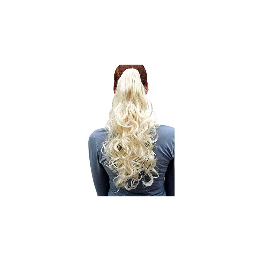 WIG ME UP - C-128-613 Hairpiece ponytail medium length curls platinum blond Butterfly-Claw/Clamp 18inch