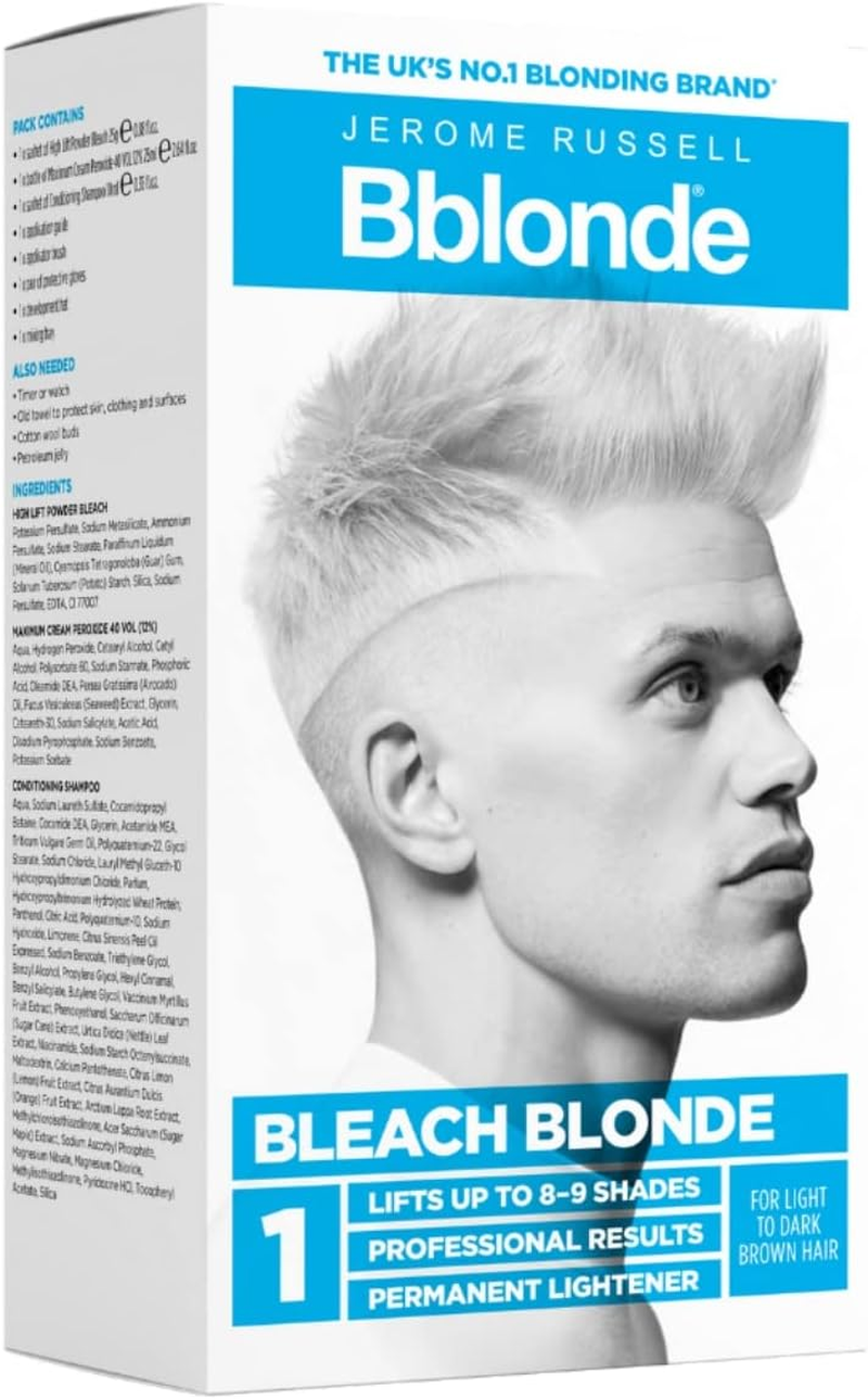 Jerome Russell Bblonde Bleach Blonde Kit No.2 - Bleach Blonde Hair Dye for Blonde to Medium Brown Hair Colour, Powder Bleach High Lift for 6-7 Shades Lighter Hair, Hair Dye Permanent for Men