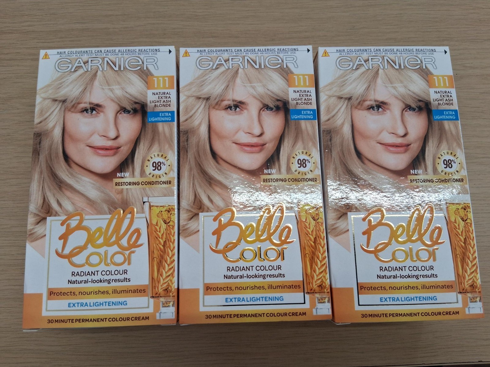 Garnier Belle Color 111 Natural Extra Light Ash Blonde Permanent Hair Dye X3