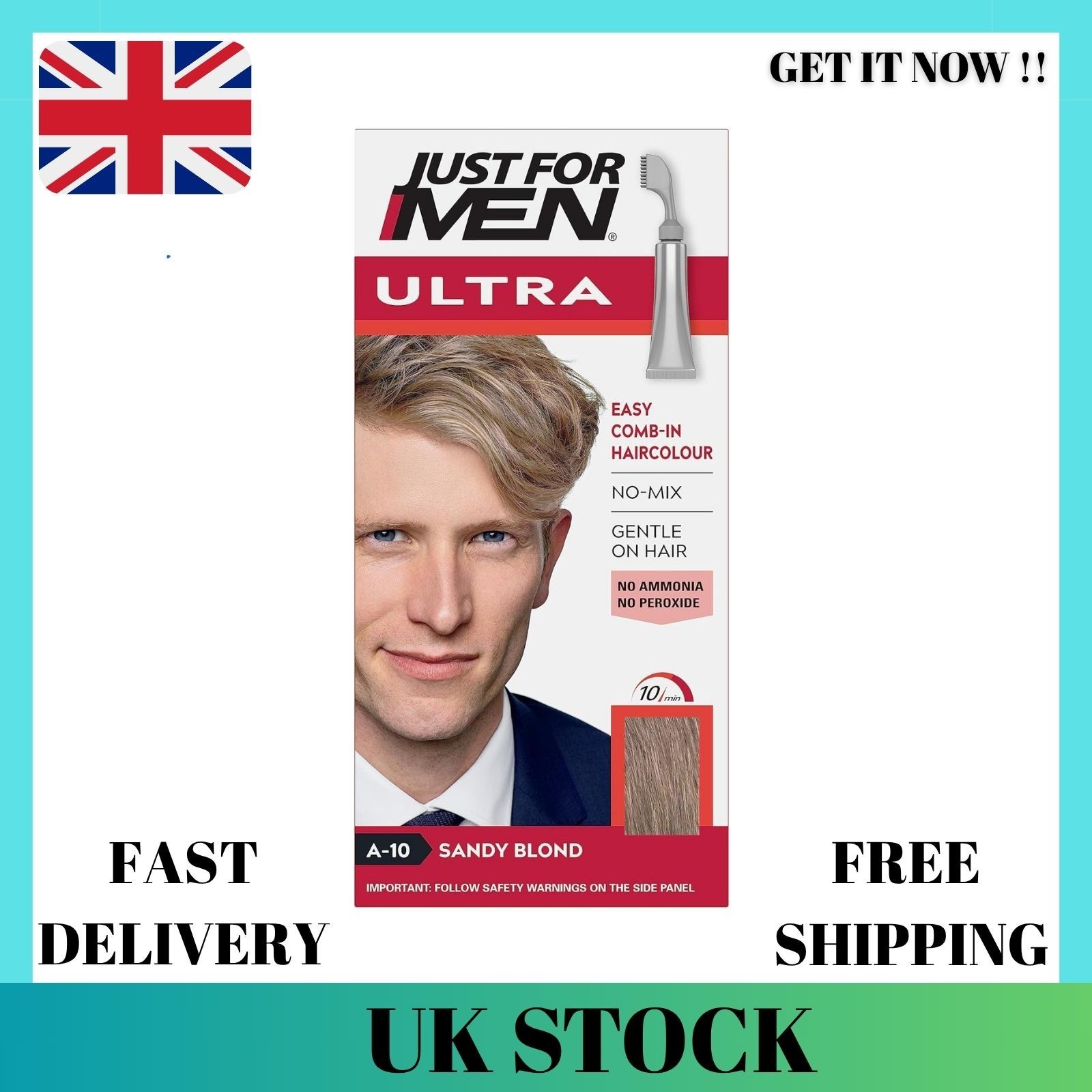 Just for men Ultra Sandy Blonde Hair Colour Dye for Short Hair, Comb Away the Greys � A10