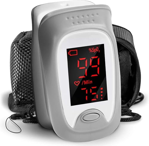 Duronic Fingertip Pulse Oximeter OX01R Blood Oxygen Level Monitor for Measuring Blood Oxygen & Pulse Rate, Finger Pulse Monitor with Lanyard & Carry Pouch
