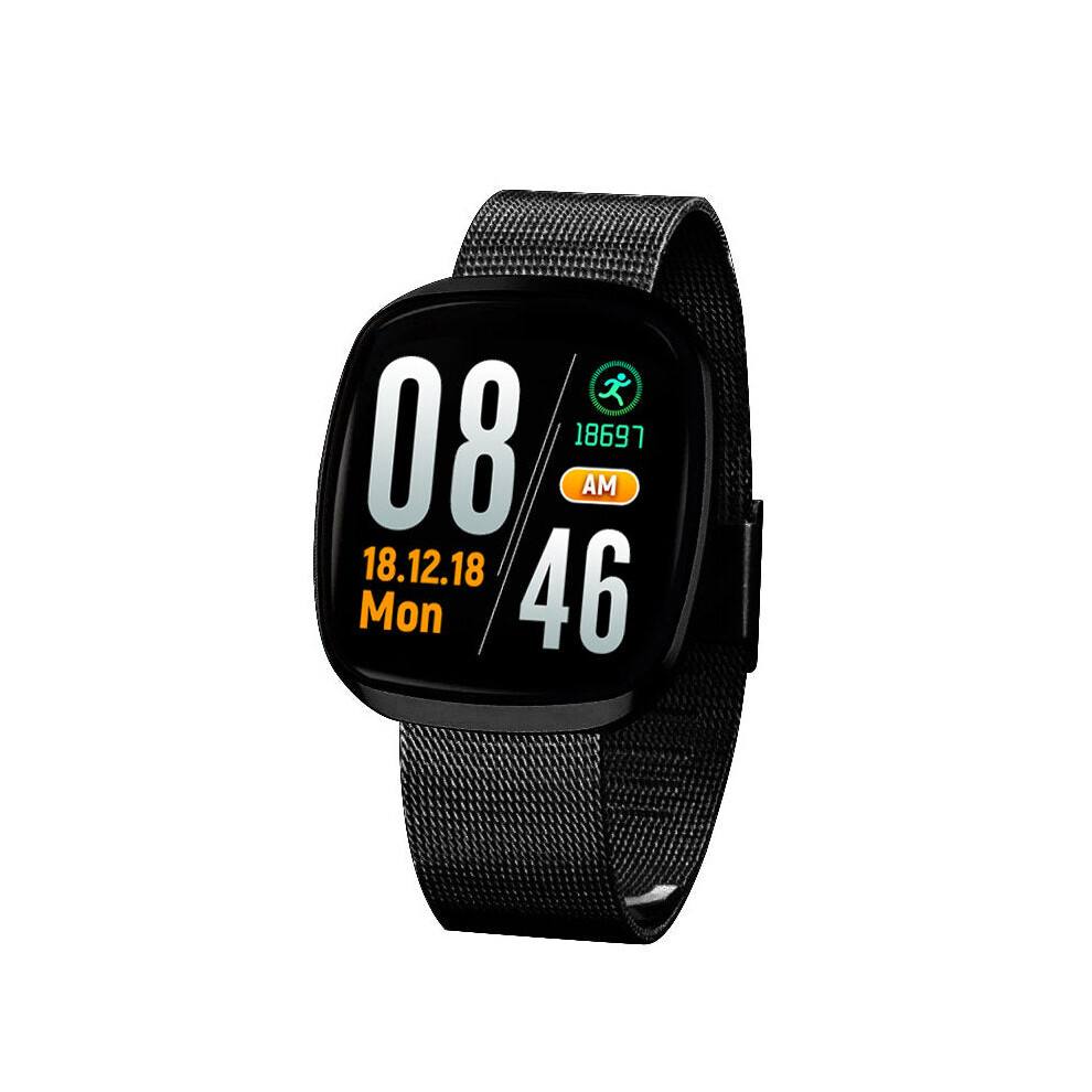 (Black) Milanese Steel Full Touch Custom Watch Face Blood Pressure Smart Watch