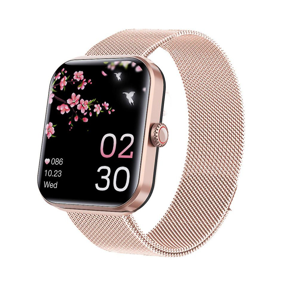 (Rose Gold) Milanese Steel Full Touch Custom Watch Face Blood Pressure Smart Watch