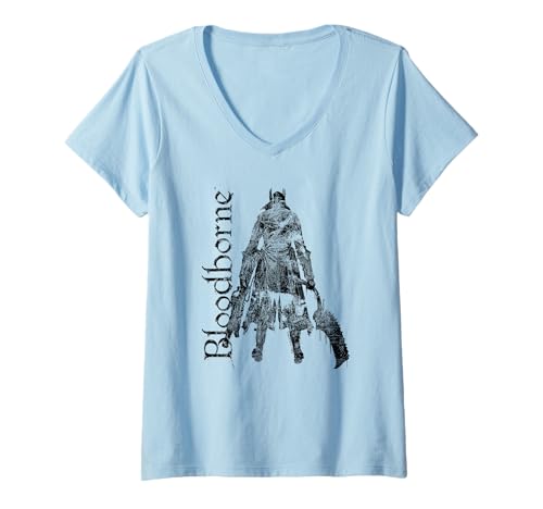 Women's Bloodborne Hunter Silhouette with Logo Dark Video Game V-Neck T-Shirt