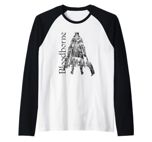 Bloodborne Hunter Silhouette with Logo Dark Video Game Raglan Baseball Tee