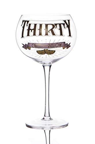 Boxer Gifts GWG330 Age ‘Thirty – Chilled and Mellow’ Prohibition Style Gin Bloom Glass | Glassware Perfect for a 30th Birthday | Packaged in a Vintage Gift Box, 500 milliliters, Transparent