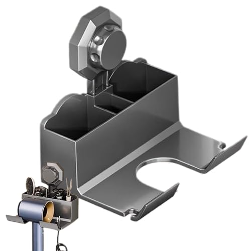 Hair Dryer Wall Holder - Wall Mounted Blow Dryer Stand | Multifunctional Hair Care Styling Tool Stand | Wall Organiser with Storage Compartment for Hair Dryer, Toiletries, Comb and Accessories