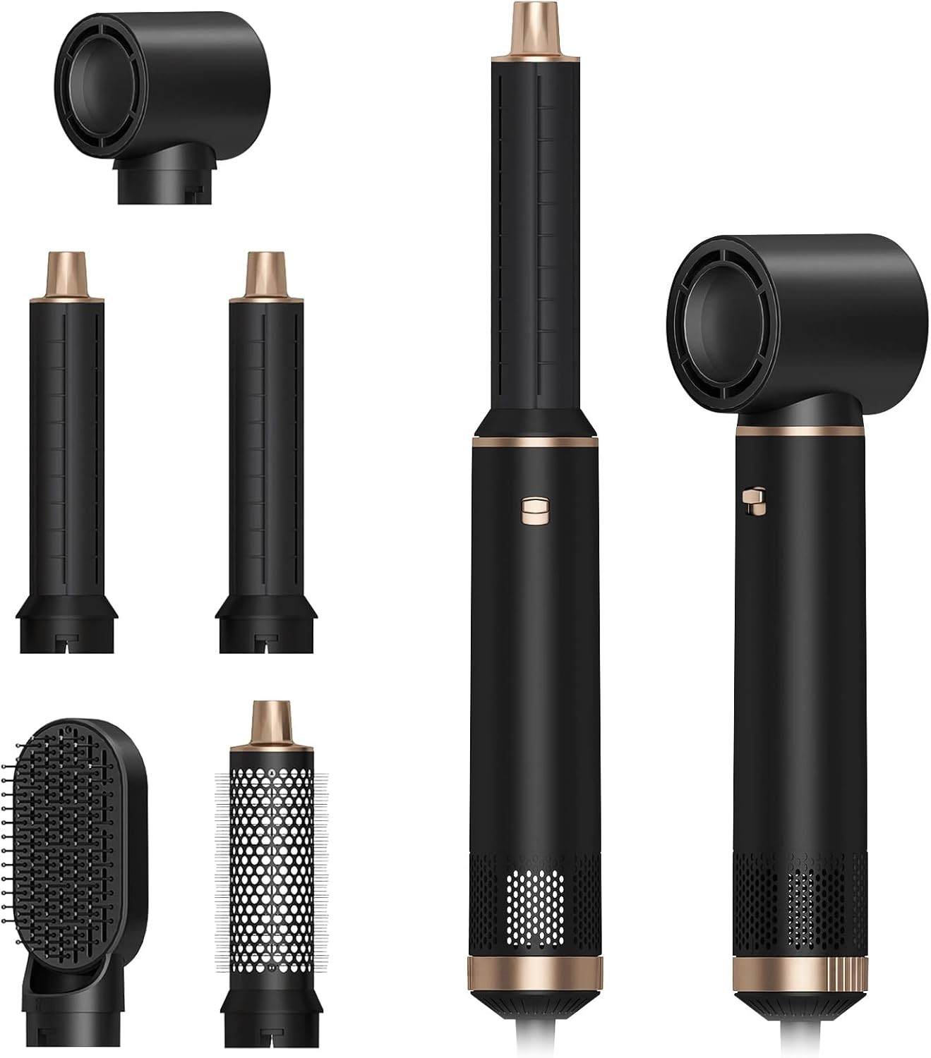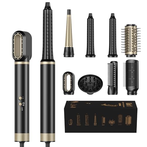UKLISS Airstyler 7 in 1, Hair Dryer Set with Automatic Hair Wrap Curler, Thermal Brush, Hot Air Brush, Multistyler Blow Dryer for Styling, Gifts Sets for Women Volume, Curl, Smooth, D& Style - Black