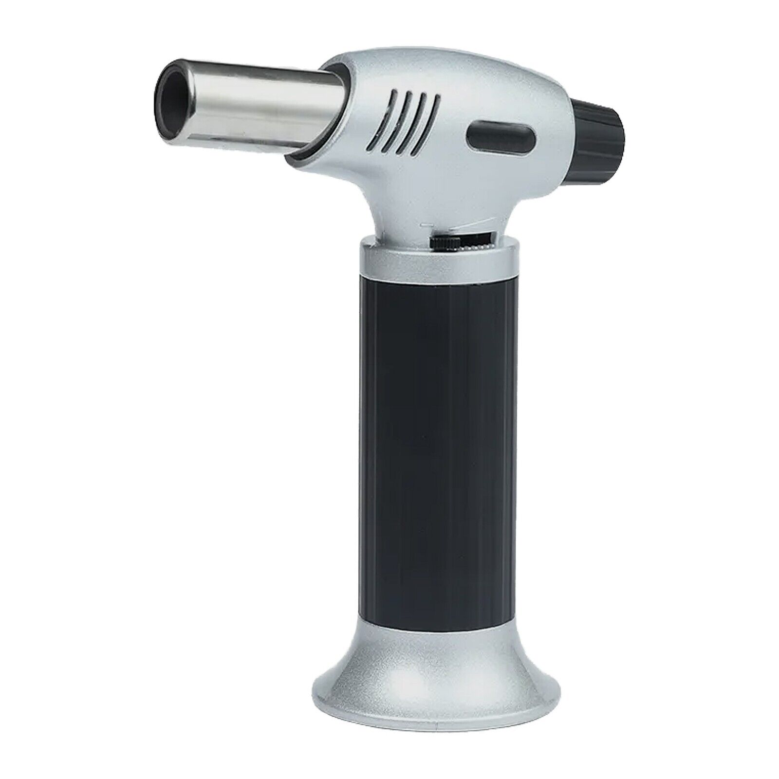FiNeWaY Refillable Blow Torch Lighter Kitchen Butane Culinary Torch Chef Cooking Torch with Adjustable Flame Lighter and with Safety Lock – Ideal for DIY, Creme, Brulee, BBQ and Baking – Silver/Black
