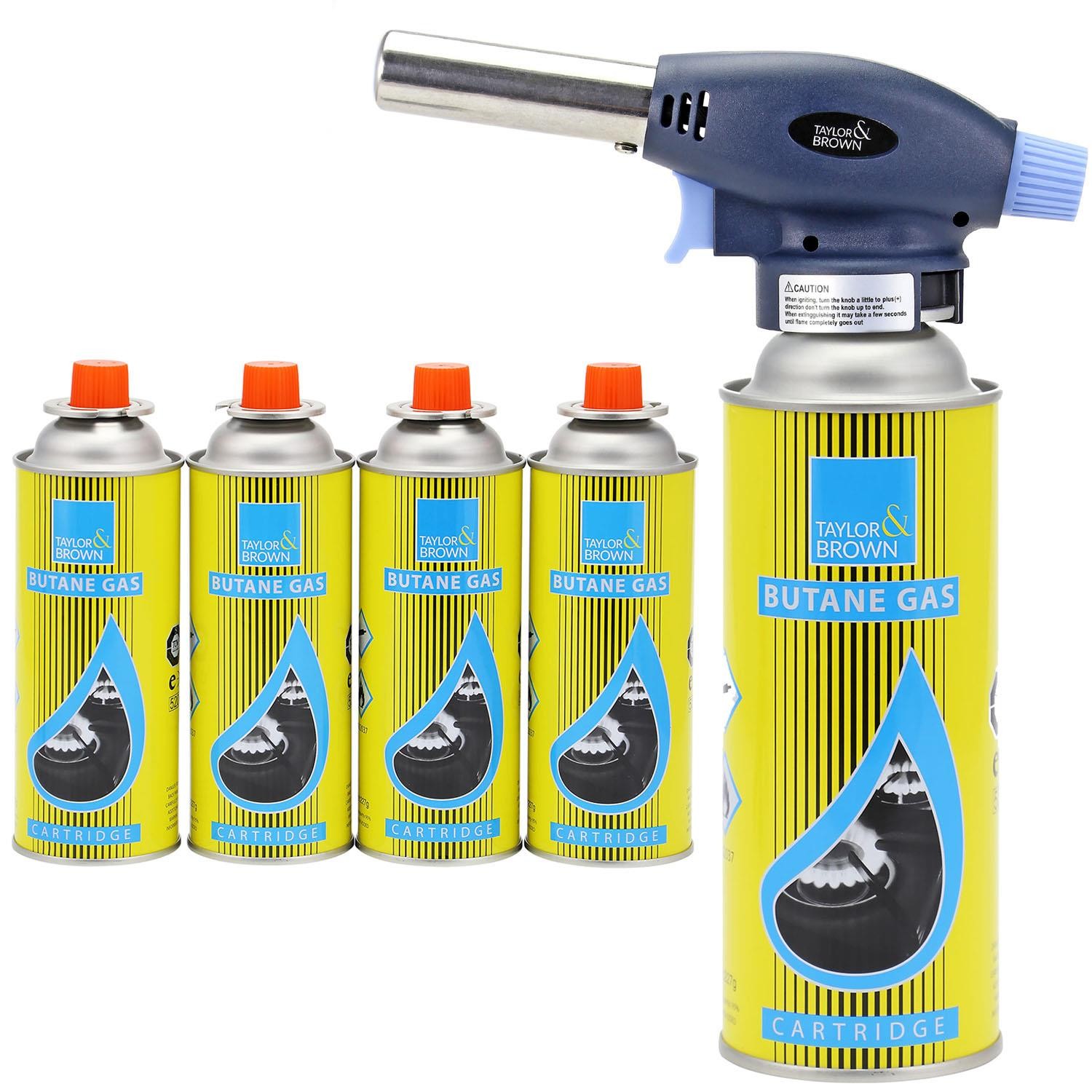 Blow Torch with 4 Butane Gas Bottles - for Camping, Cooking, Kitchen, BBQ,...