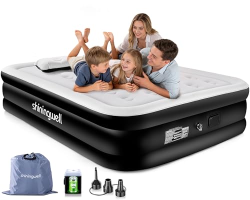 shiningwell Air Mattress with Built-in Pump, Double Blow up Mattress, Inflatable Air Bed with Soft Velvet Surface, Leak-Resistant Technology, Ideal for Camping and Home Use 200x152x48cm