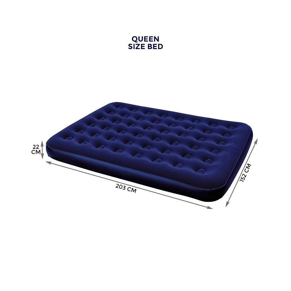 Crystals Large Flocked Airbed Inflatable Camping Blow Up Mattress Air Bed And Electric Pump, Blue (Queen (U.K. Standard) Bed Only)