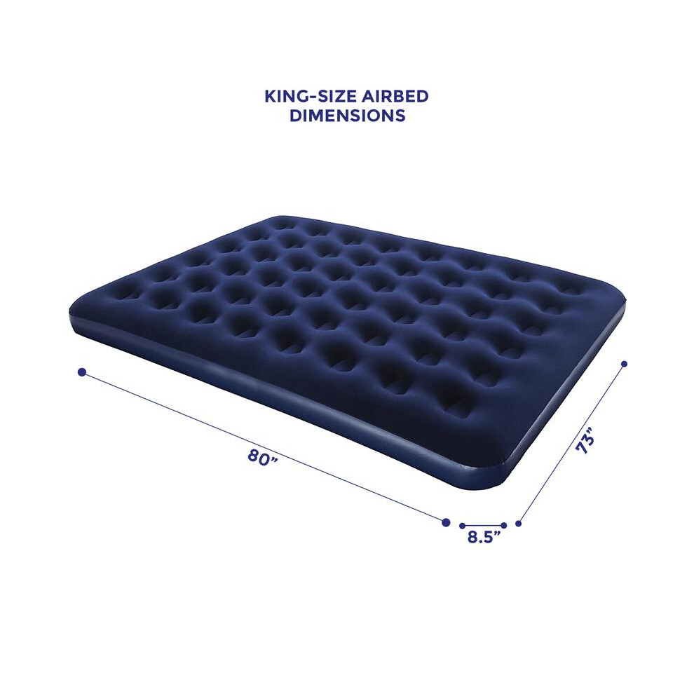 King Airbed, Quick Inflatable Camping Blow Up Mattress Air Bed, Versatile, Easy Store Waterproof Sleeping Mattress for Hiking, Travel, Outdoor (King Bed - Blue - 203 x 183 x 22cm)