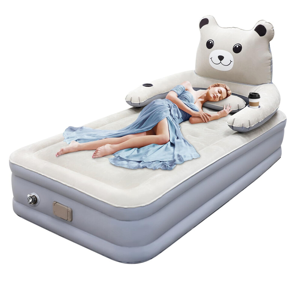 Simpli Comfy 18" Raised Twin Inflatable Air Mattress with Built-in AC Pump, Fast Self-Inflating Blow Up Air Bed with Waterproof Top for Home, Travel,