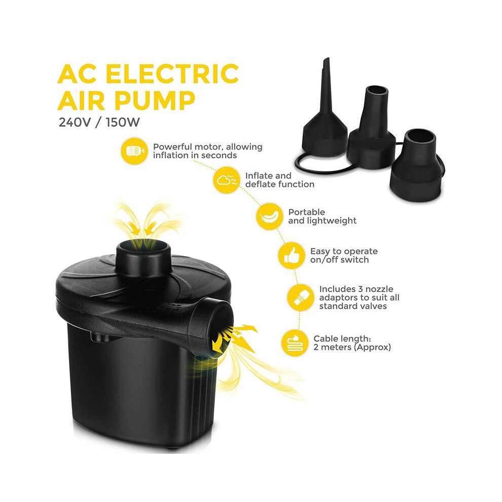 Neo Raised Flocked Airbed Inflatable Guest Camping Blow Up Mattress Air Bed Electric Pump (Double with Electric Pump)