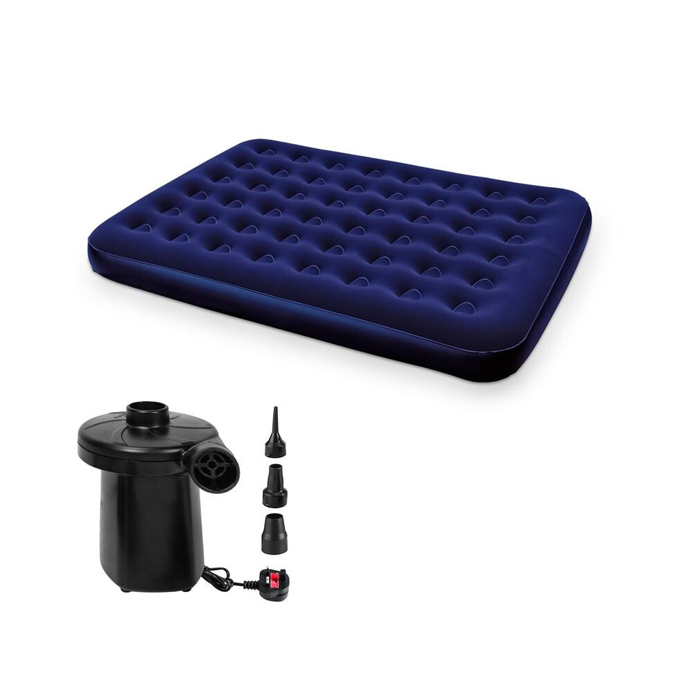 Crystals Large Flocked Airbed Inflatable Camping Blow Up Mattress Air Bed And Electric Pump, Blue (King (U.K. Standard) Bed Only)