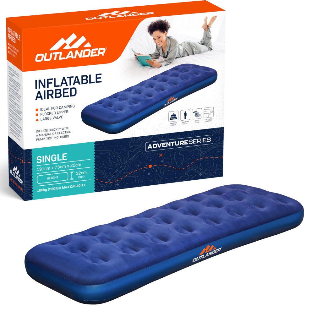 (SINGLE AIRBED ) Double Single Flocked Camping Airbed Inflatable Mattress Blow Up Air Bed