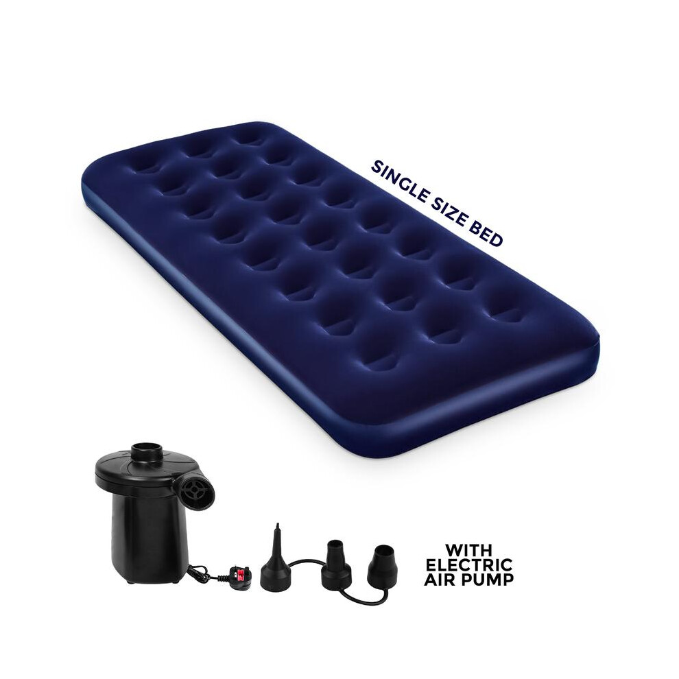 (SINGLE AIRBED + ELECTRIC PUMP) Double Single Flocked Camping Airbed Inflatable Mattress Blow Up Air Bed
