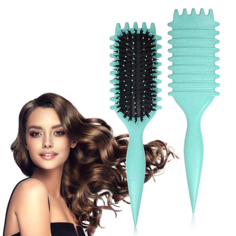 Curl Defining Brush for Curly Hair with Boar Bristles, Frizz Control and Fast Blowdry Vent, Green