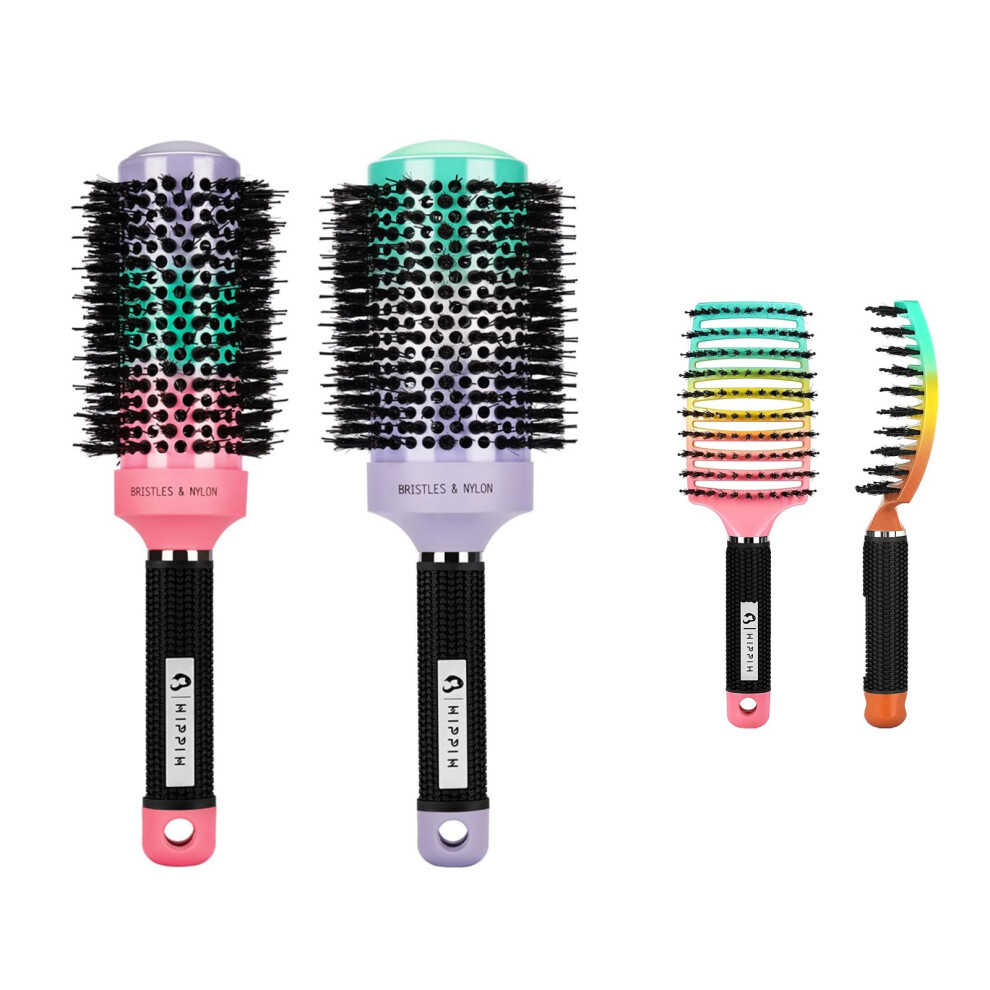 Boar Bristle and Nylon Pin Hair Brush Set with Curved Vented Design for Fast Blowdry and Detangling
