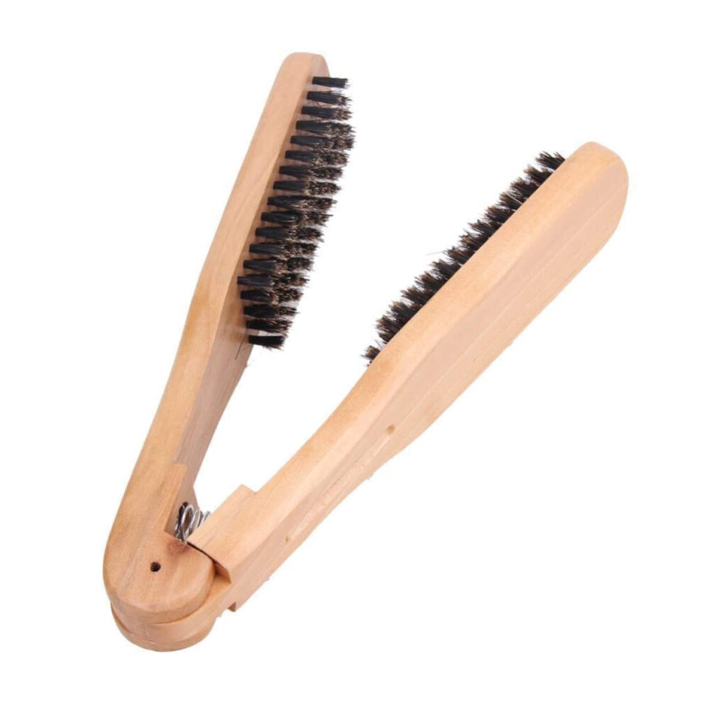 Hair Straightening Brush with Boar Bristles, DualSided Clamp Design, AntiScald Vented Comb for Smooth BlowDry Styling