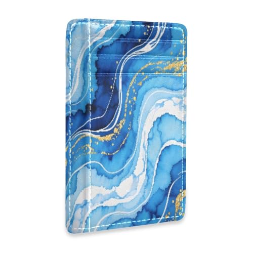 xigua Slim Wallet Front Pocket Leather RFID Blocking Credit Card Holder Blue Alcohol Ink Texture Minimalist Wallets
