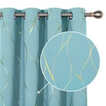 Deconovo Thermal Insulated Blackout Curtains, Gold Wave Foil Printed Eyelet Cur