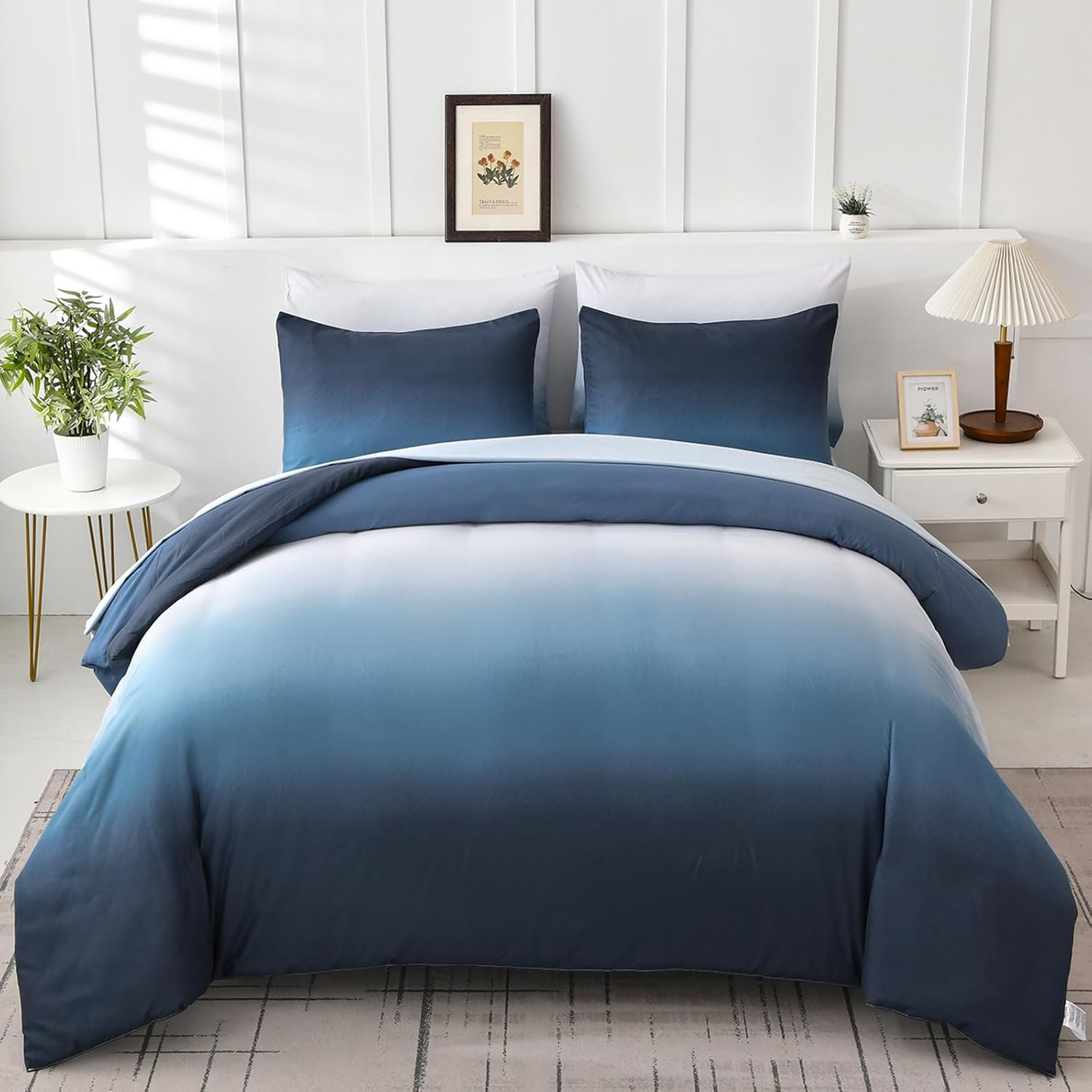 Blue and white bedding