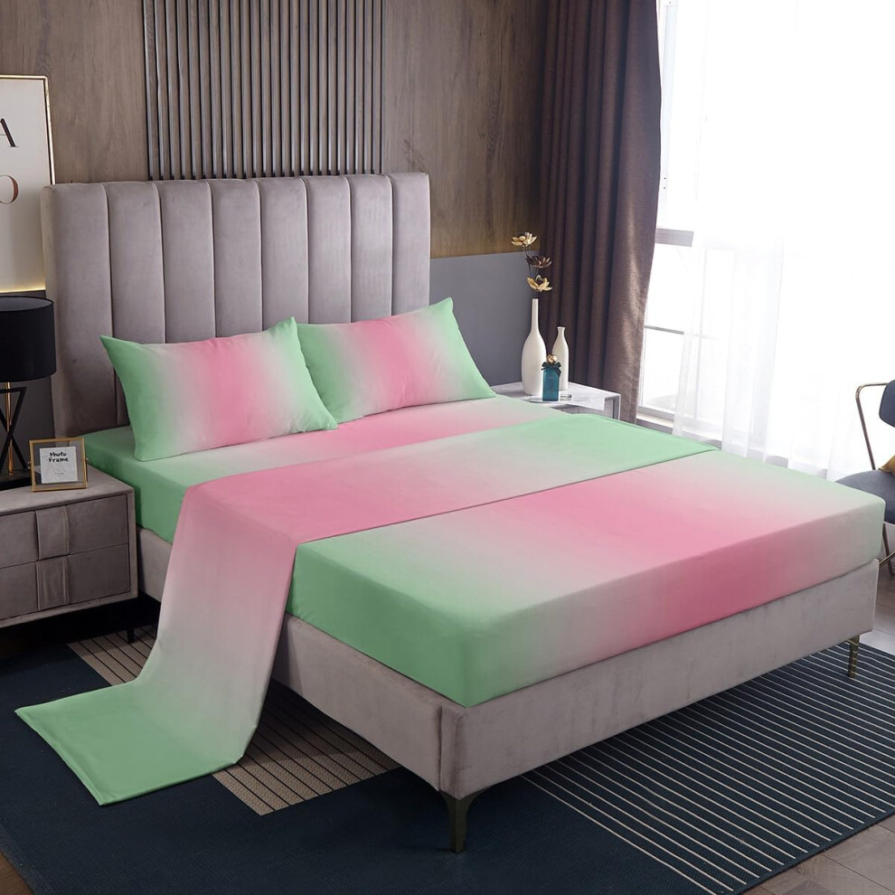 (Multi 07, Double(No Comforter)) Homewish Greyish White and Stone Blue Sheets Double for Girls Boys,Rainbow Ombre Bedding Set Aesthetic Room Decor for