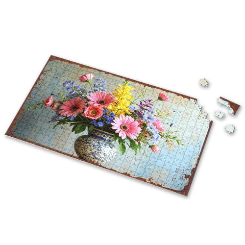 Toddler Puzzles Colorful Bouquet In Blue And White Vase Against Rustic Background Picture Puzzle Toys For Ages 8-13 1500 Piece Puzzle(300PCS)