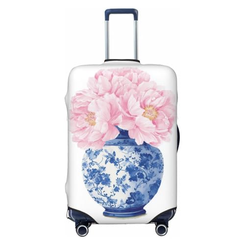 Woshuwo Blue-and-White Porcelain Vase Pink Flower Elastic Travel Luggage Covers Dustproof Scratch-Resistant Suitcase Protector Fit 22-24 Inch