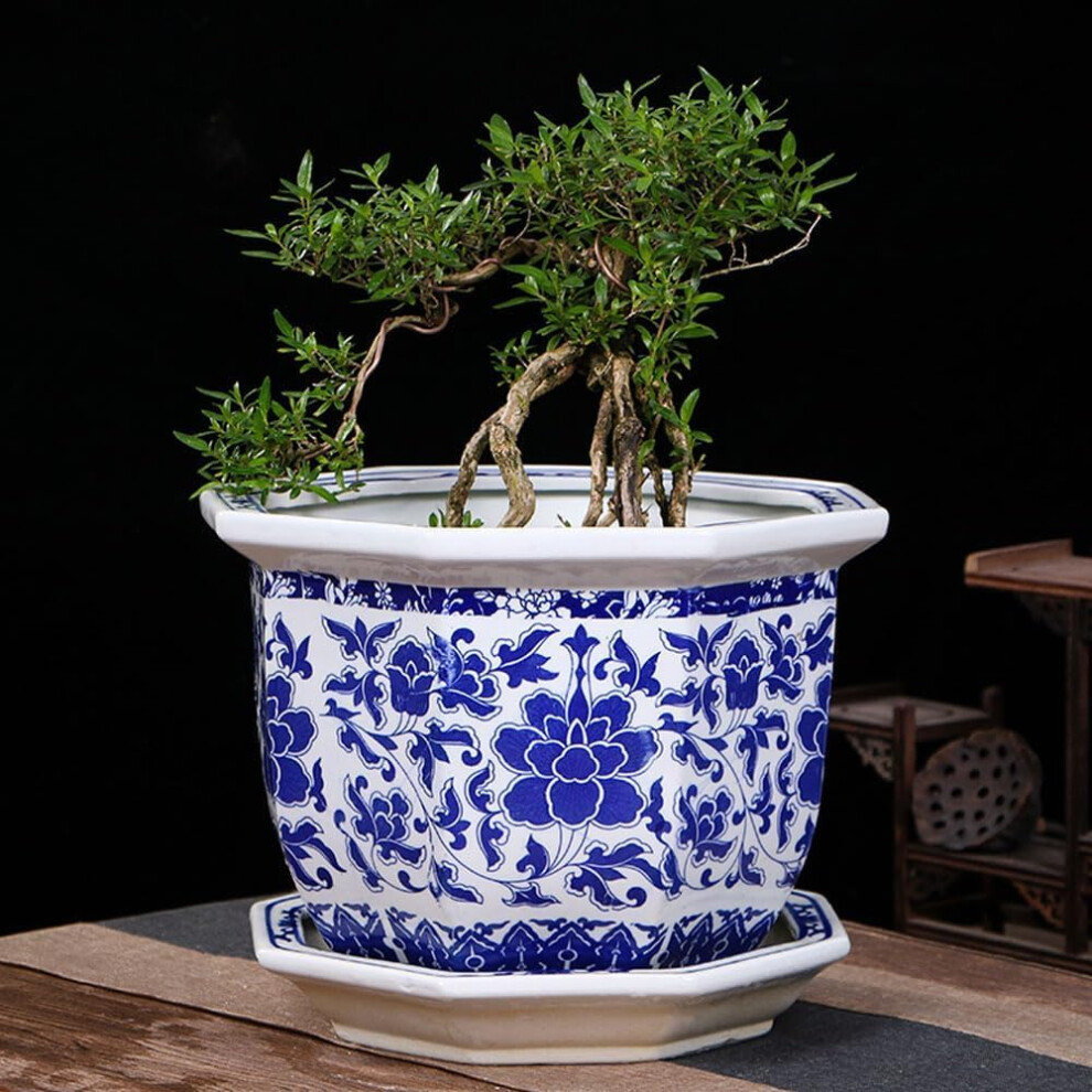 Vintage Chinoiserie Blue and White Porcelain Floral Vase For Artificial Or Fresh Flowers 38x27 Cm Gift For Adults Mom