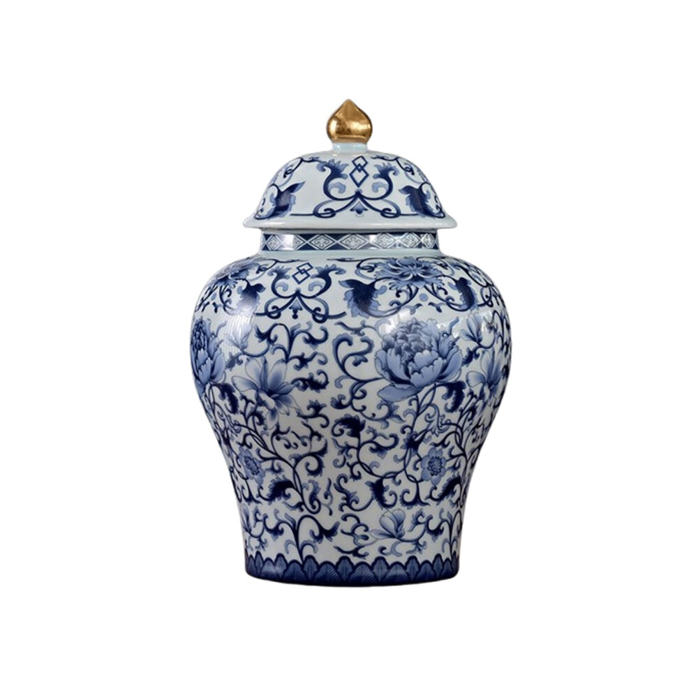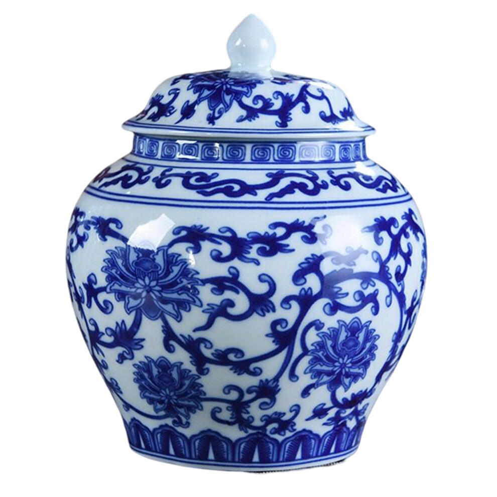 Chinese Ginger Jar Blue and White Porcelain Temple Vase with Vintage Floral Design for Elegant Home Decor