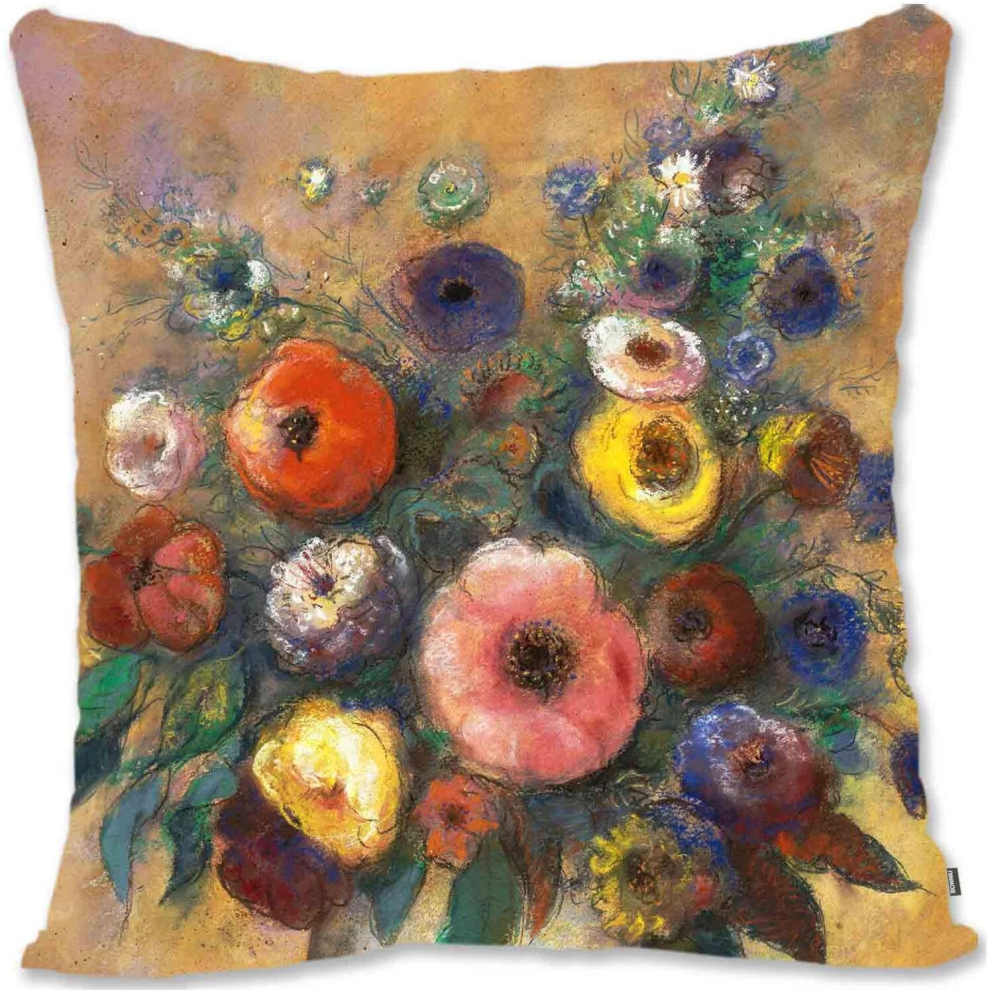 Decorative Throw Pillow Case Cover Impressionist Floral Art - Redon - Poppies And Carnations Poet In A Blue Vase RD-A White Vase of Flowers Rd