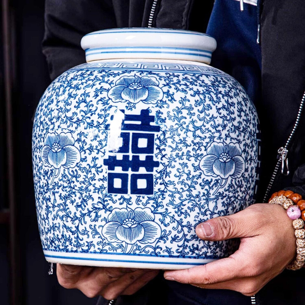 Blue And White Tea Jar Vase Handicraft Home And Kitchen Storage