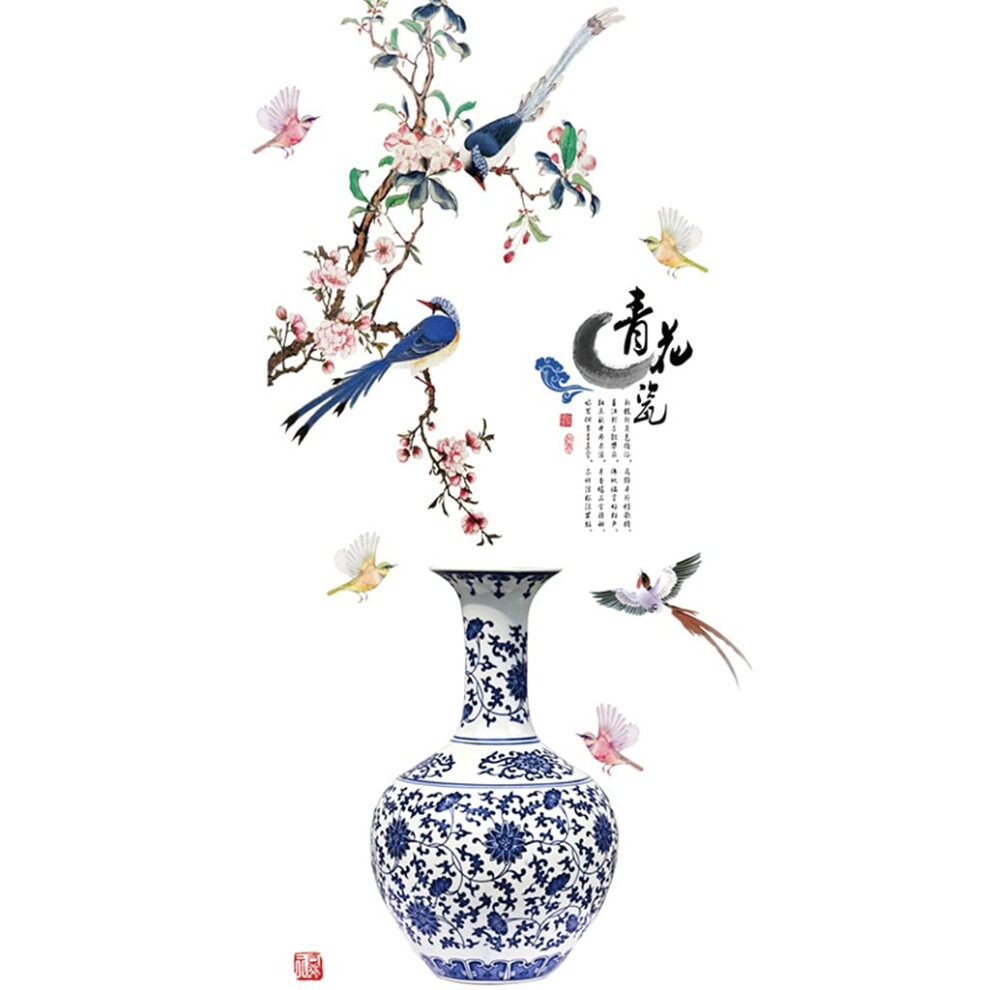 Decor Sticker 3D Wall Stickers for Bedroom,Chinese Classical 3D Simulation Blue and White Porcelain Vase Wall Decal