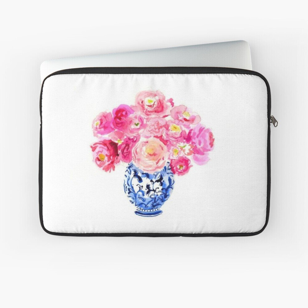 Laptop Sleeve peonies in blue and white Chinese vase watercolour 10 12 13 15 17 Inch Case Notebook Tablet Carrying Bag Cover