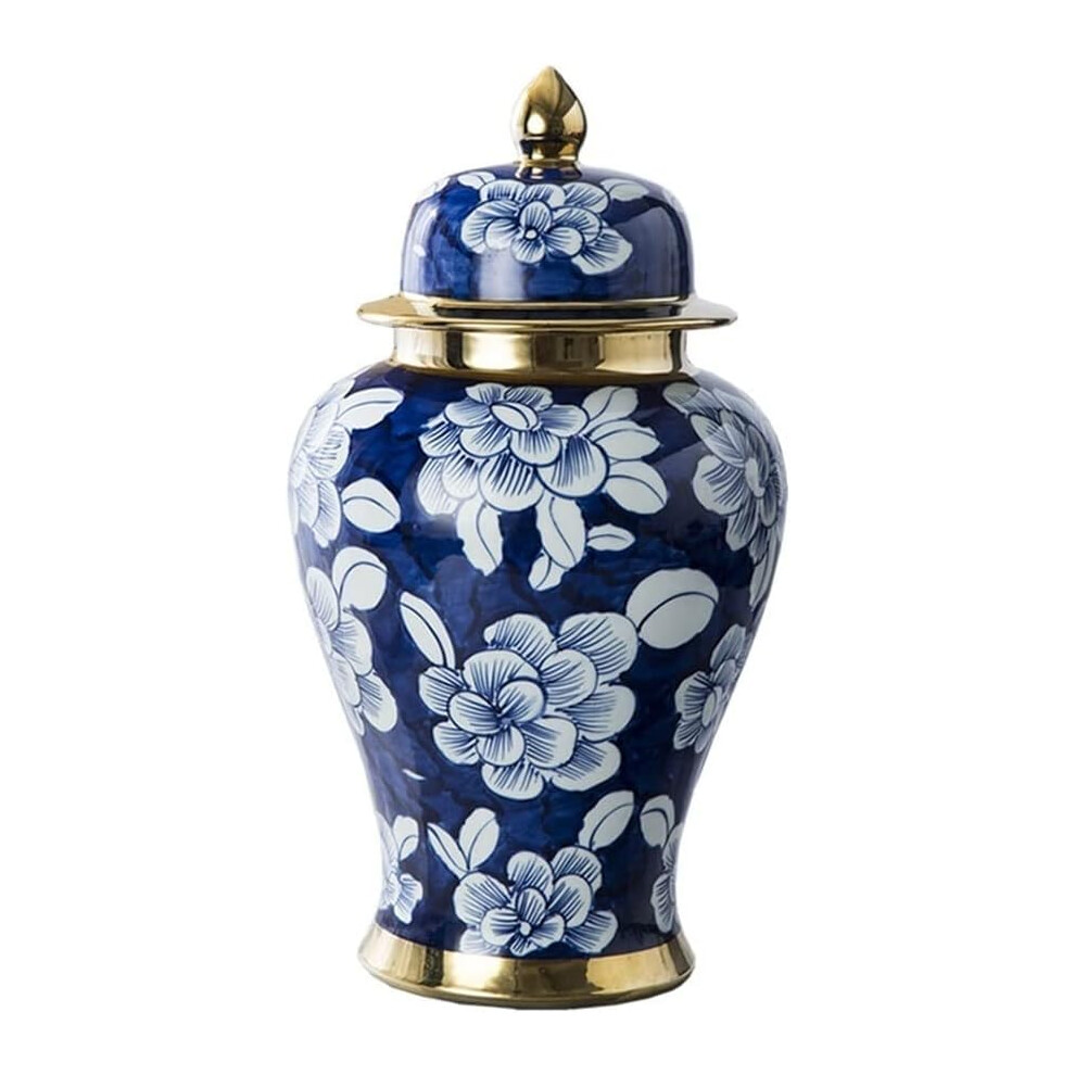 YANROSE Ginger Jar Chinese Electroplating Gold Blue And White Ceramic Flower Vase Hotel Model Room Ornaments(22 * 22 * 42.5cm)