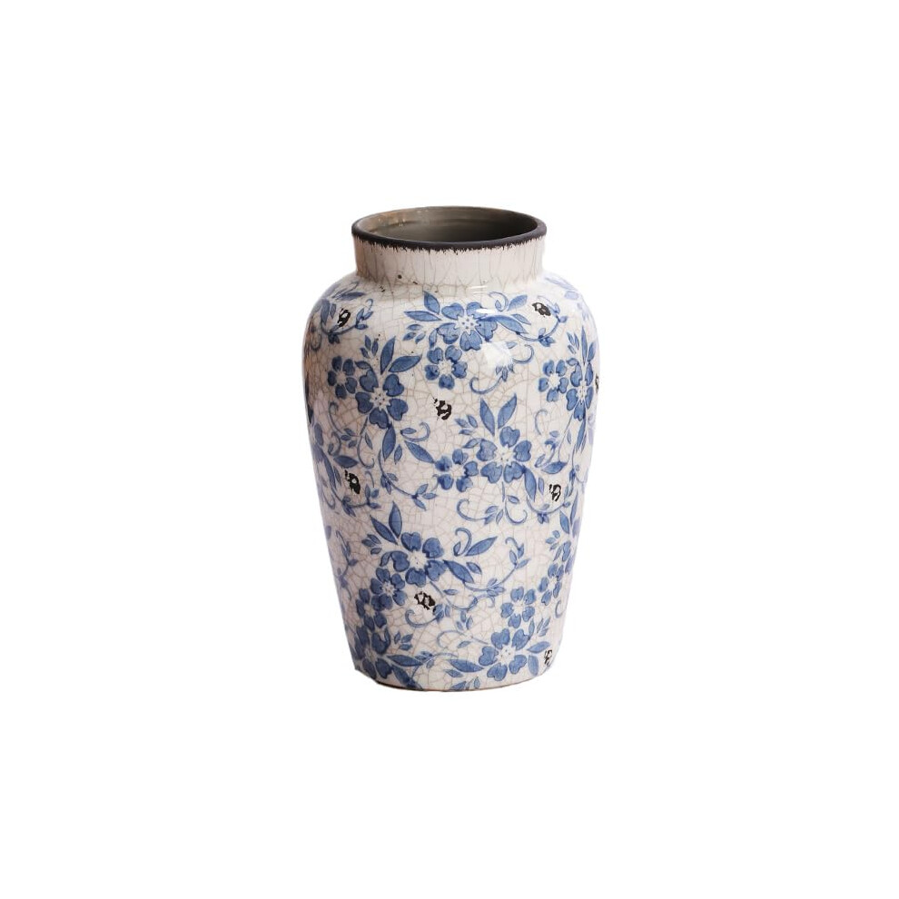 Porcelain Vase Blue And White Ceramic Flower Vase For Home Decor Vintage Rustic Chinoiserie Crackle 6.3x9.8 Inch