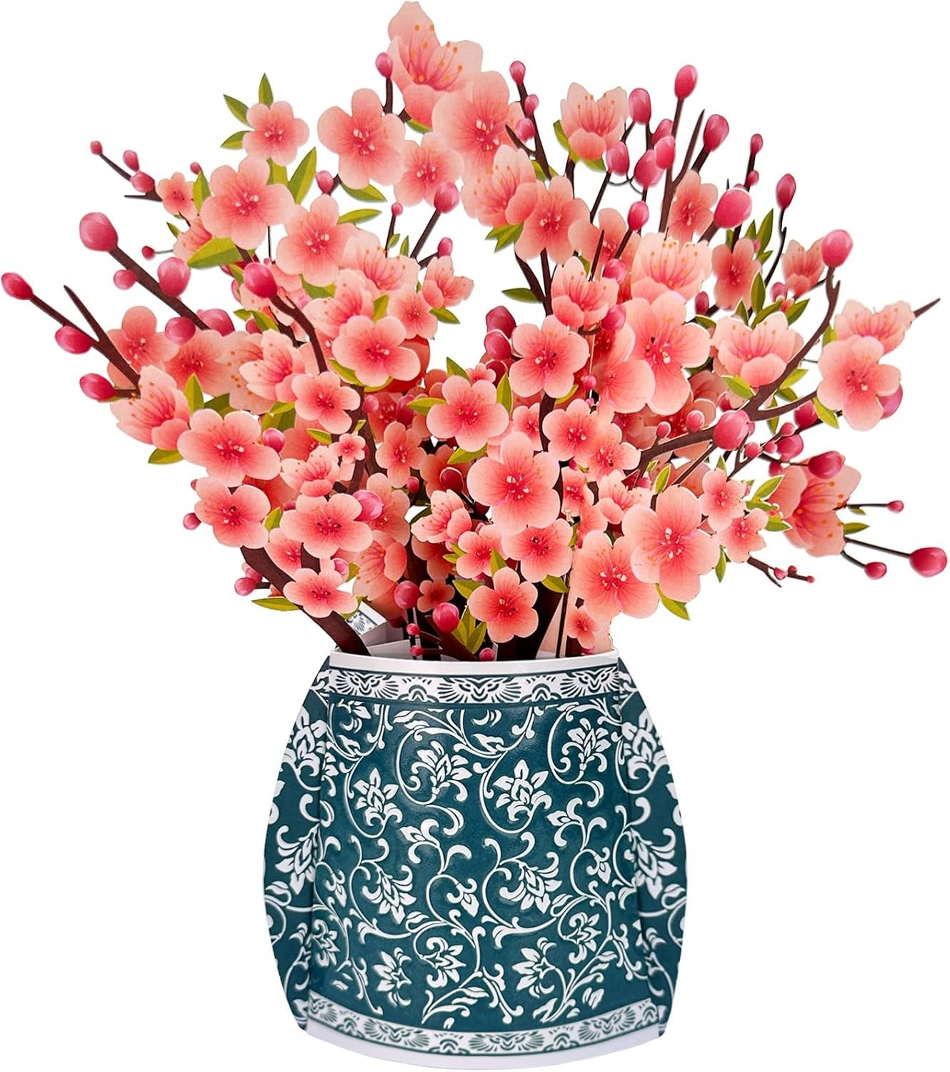Hierein Pop up Birthday Cards for Women, Blue and White Porcelain Vase 3D Popup