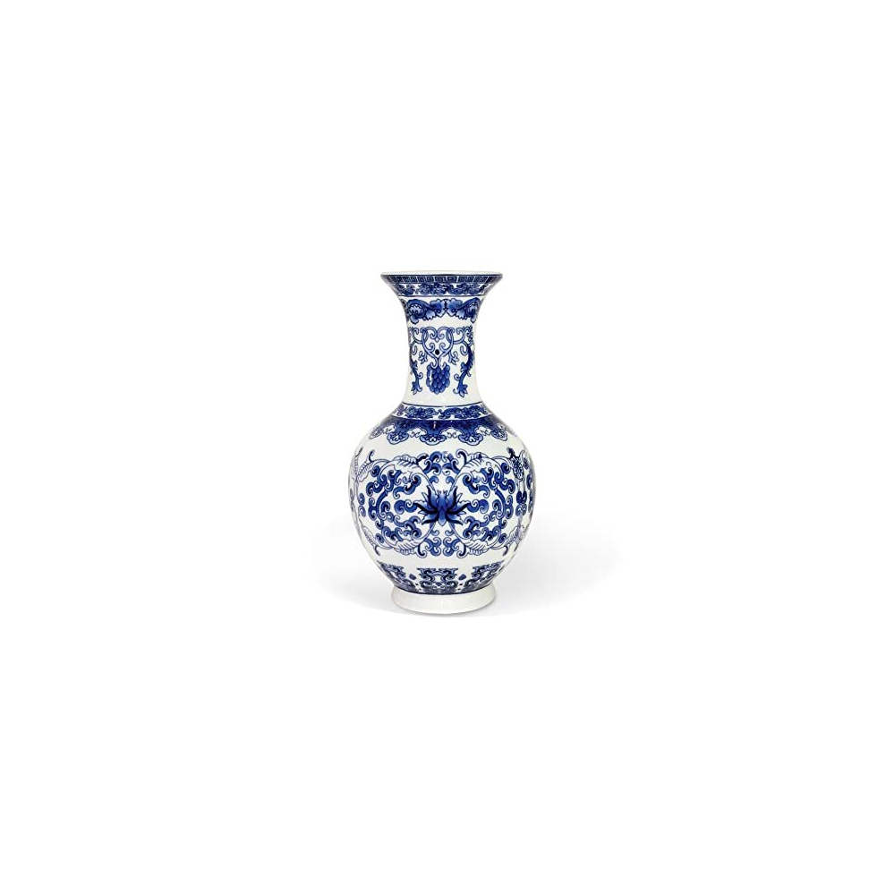 Chinoiserie Blue and White Porcelain Ceramic Vase - 8" for Home, Living Room, Bookshelf, Mantle Fireplace, Table Centerpieces