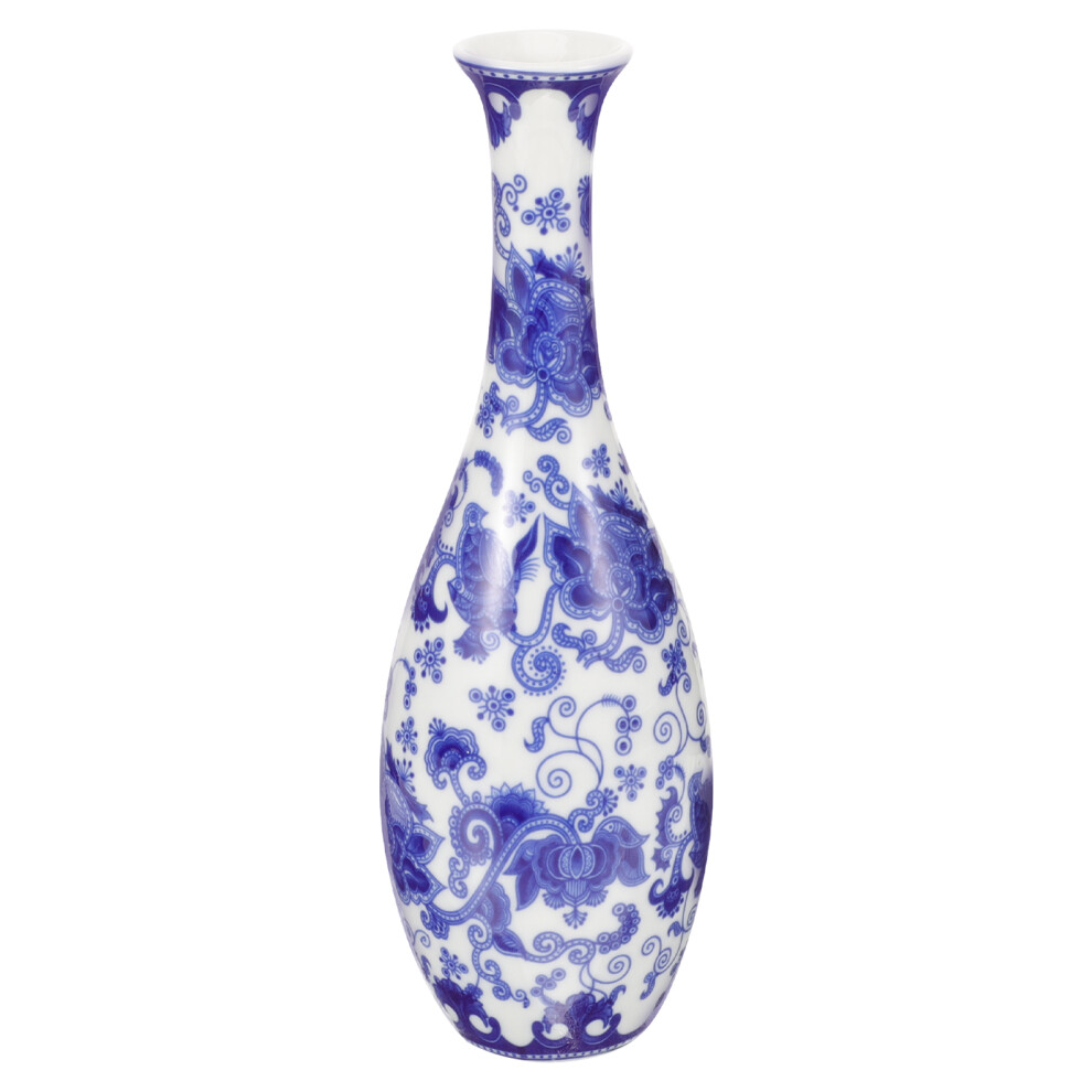 Hollyone 30CM Blue and White Ceramic Vase for Flowers, Chinoiserie Porcelain Fl